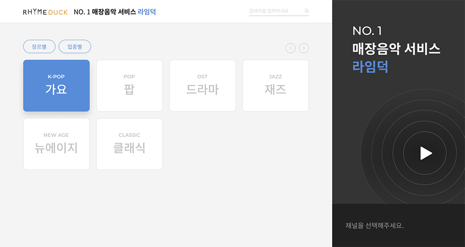 업종별/장르별 채널을 지금 바로 재생하세요!