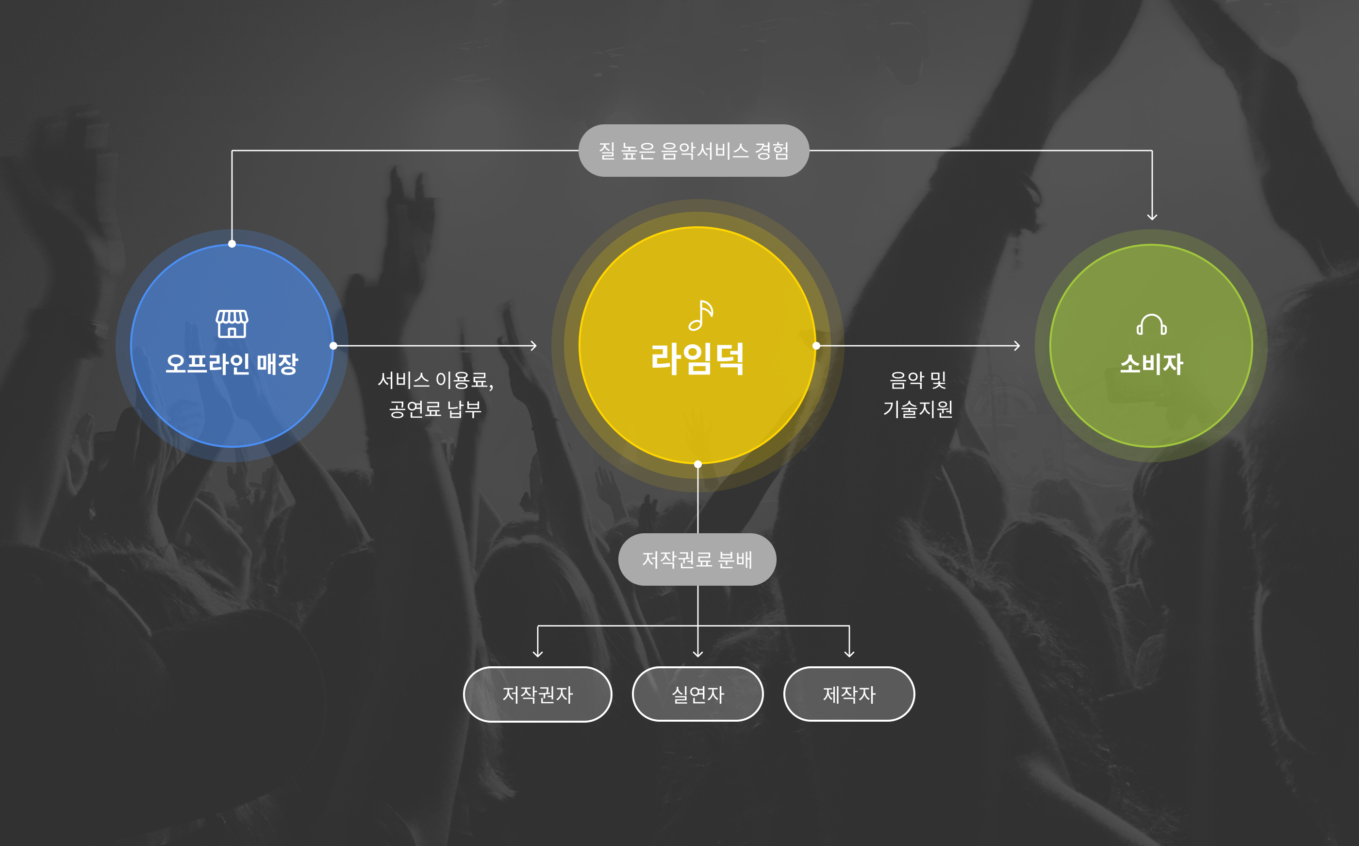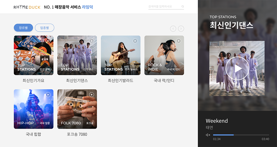 엄선한 적합한 음악을 합법적으로 재생할 수 있게 돕는 서비스입니다.